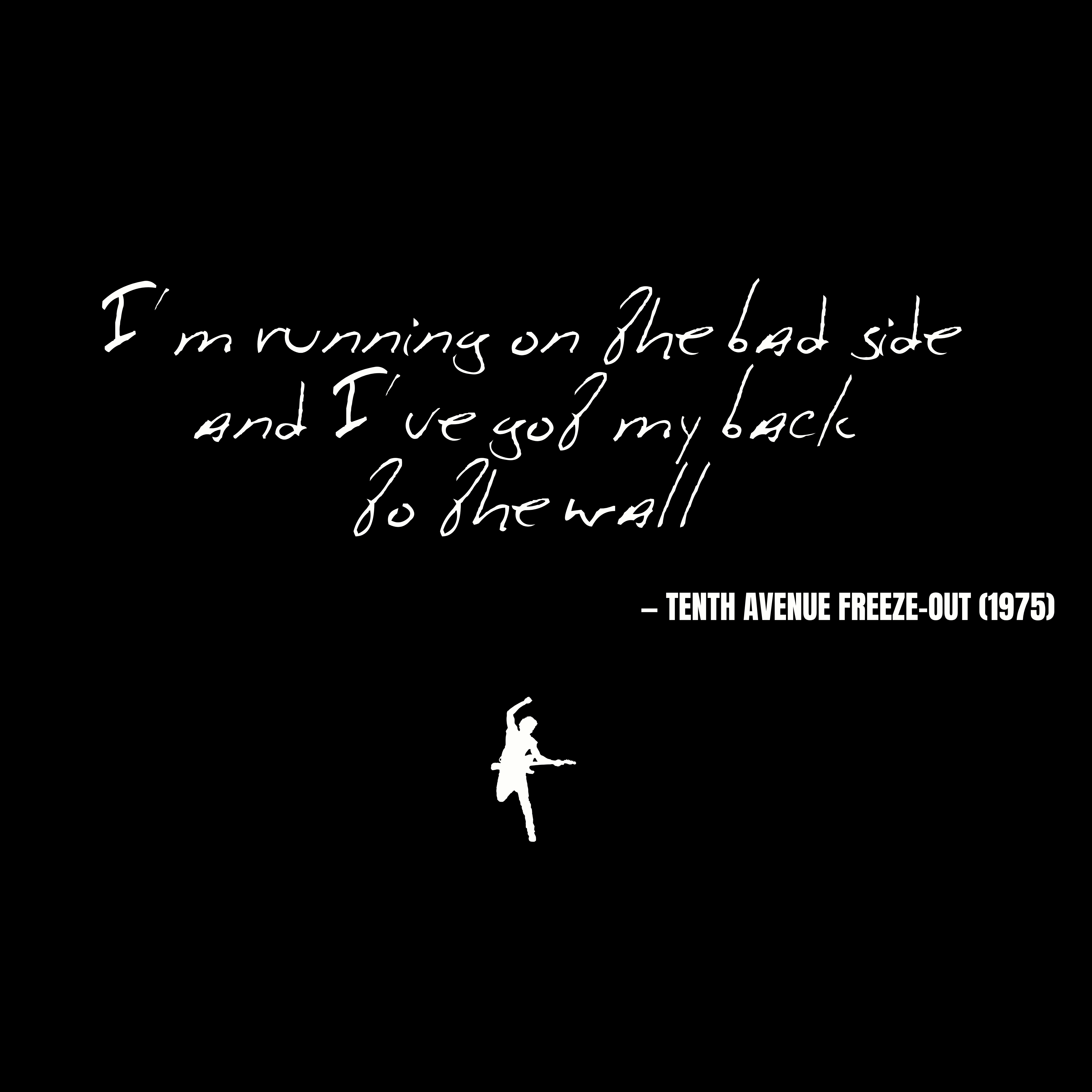 Step into nostalgia and wear a piece of rock history with our exclusive Springsteen lyric shirt, featuring the iconic line "I'm running on the bad side And I've got my back to the wall" from the classic song "Tenth Avenue Freeze-Out". This shirt is more than just clothing; it's a tribute to Bruce Springsteen's unforgettable impact on music and a testament to the enduring spirit of his lyrics.