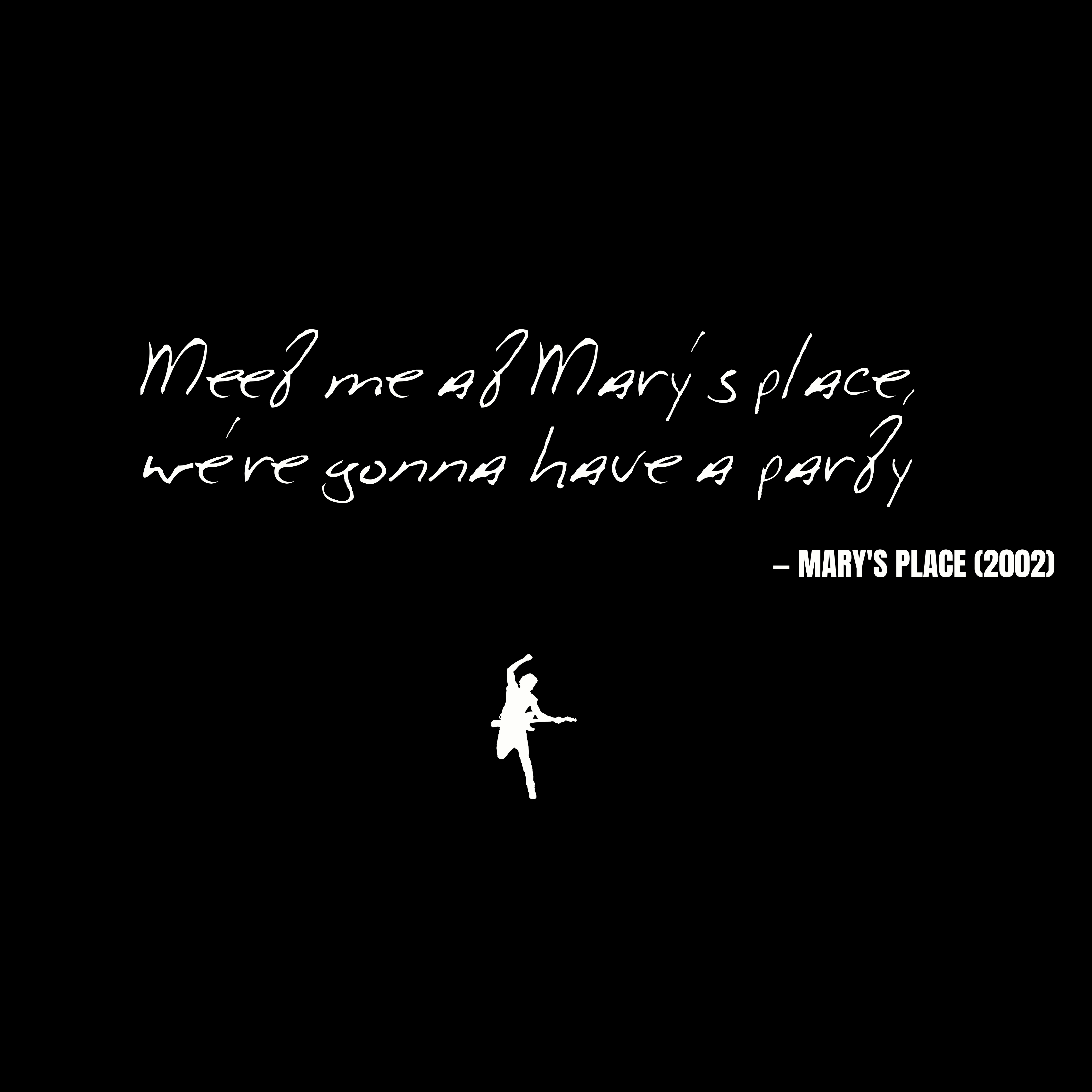 Celebrate joy, soul, and the spirit of togetherness with this t-shirt featuring the lyric "Meet me at Mary’s place, we’re gonna have a party" from Bruce Springsteen’s gospel-infused anthem Mary’s Place. First released on The Rising (2002), this song brought comfort, healing, and celebration when we needed it most — and this shirt carries that feeling forward.